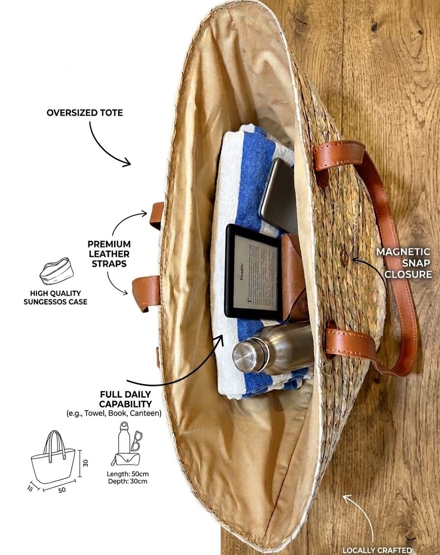 Eco Luxe Palm Leaf Tote-Handwoven Tropical Travel Bag